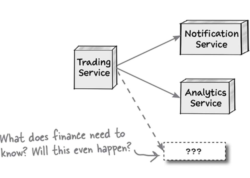 سرویس معاملاتی بهشدت به مصرفکنندههاش وابستهست—دقیقاً میدونه چندتا هستن و با کدومها در ارتباطه. اما هنوز مطمئن نیستیم که آیا باید به سرویس تطابق (compliance) هم پیام بفرستیم یا نه. اگه یه روز لازم بشه، باید سرویس معاملاتی رو دوباره دستکاری کنیم تا بتونه پیامها رو به یه صف سوم هم بفرسته. خلاصهش اینه که وقتی از صفها استفاده میکنیم، داریم از قابلیت توسعهپذیری (Extensibility) صرفنظر میکنیم.