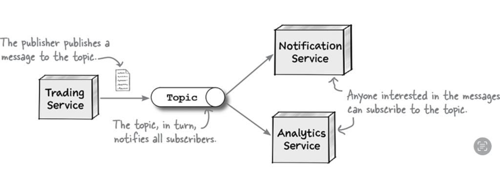 اما تاپیکها یهسری ایراد هم دارن. اول اینکه نمیتونی پیام رو برای هر سرویس بهصورت اختصاصی تنظیم کنی—یه پیام عمومی میفرستی که همه باید همونو بگیرن، چه بخوان چه نه. مقیاسپذیری هم همینطوره؛ چون فقط یه تاپیک داری، همهچیز باید با هم بزرگ یا کوچیک بشه. و نکته مهمتر اینکه هر کسی میتونه مشترک اون تاپیک بشه بدون اینکه سرویس معاملاتی خبردار بشه—که تو بعضی شرایط ممکنه یه ریسک امنیتی باشه.