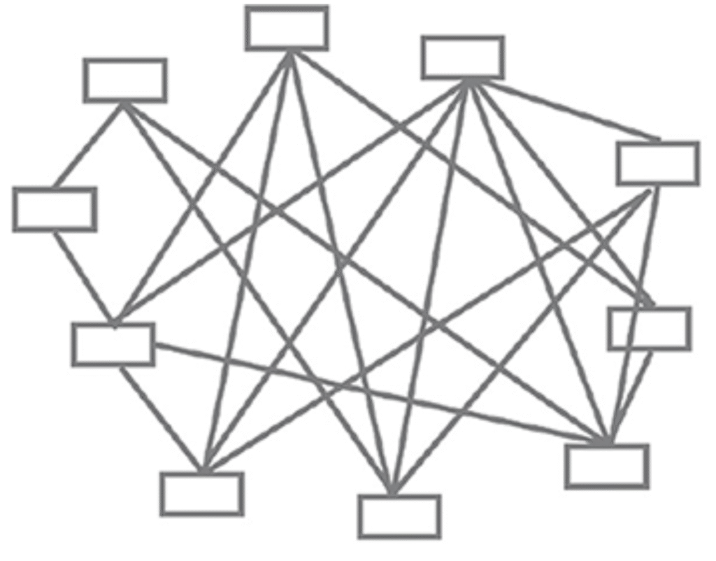 بهش میگن «توپ بزرگ گِلی» (big ball of mud) چون تعاملها و وابستگیهای بین کامپوننتها اونقدر زیاد میشن که نمودار معماری شبیه یه توپ گِل یا حتی یه کاسه اسپاگتی به نظر میرسه.