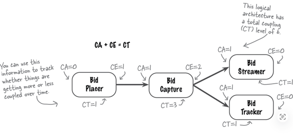 برای درک نحوهی عملکرد اتصال ورودی (Afferent Coupling)، به تعامل بین سه کامپوننت در معماری Adventurous Auctions نگاه کن.