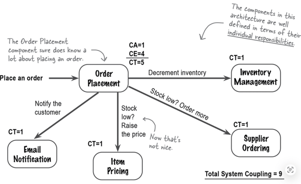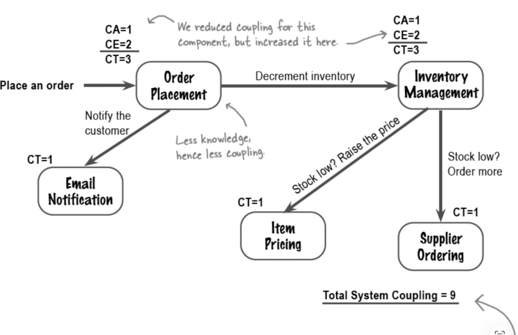 متوجه شدی که با وجود کاهش اتصال کامپوننت Order Placement، سطح اتصال کل سیستم تغییری نکرد؟