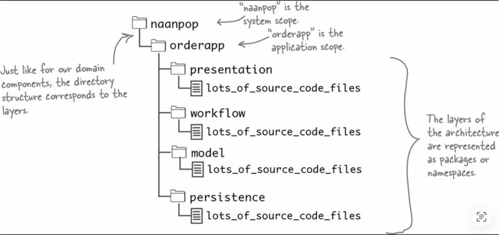 نامهای کامل این لایهها بهصورت پکیج در Java، فضاینام (namespace) در .NET، یا هر مکانیزم نامگذاریای که زبان برنامهنویسی انتخابیتون استفاده میکنه ظاهر میشن.