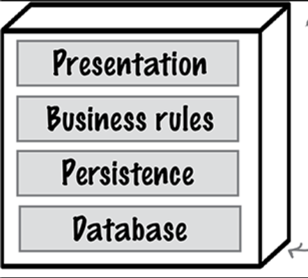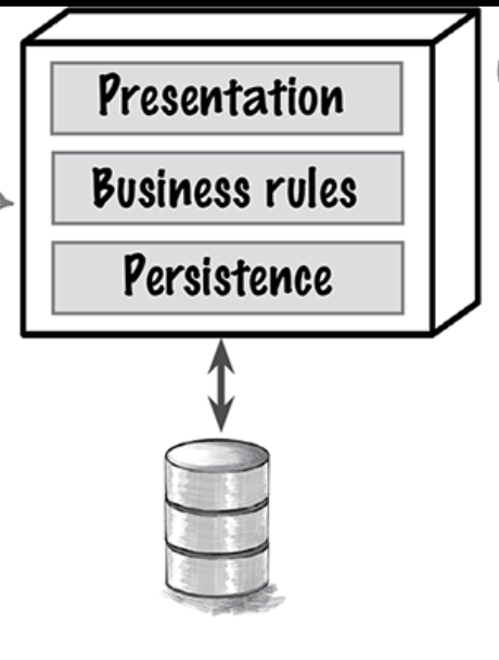 - معماری لایهای یکپارچه (monolithic) است: کل سیستم (کد و پایگاه داده) بهصورت یک پکیج واحد مستقر میشود.