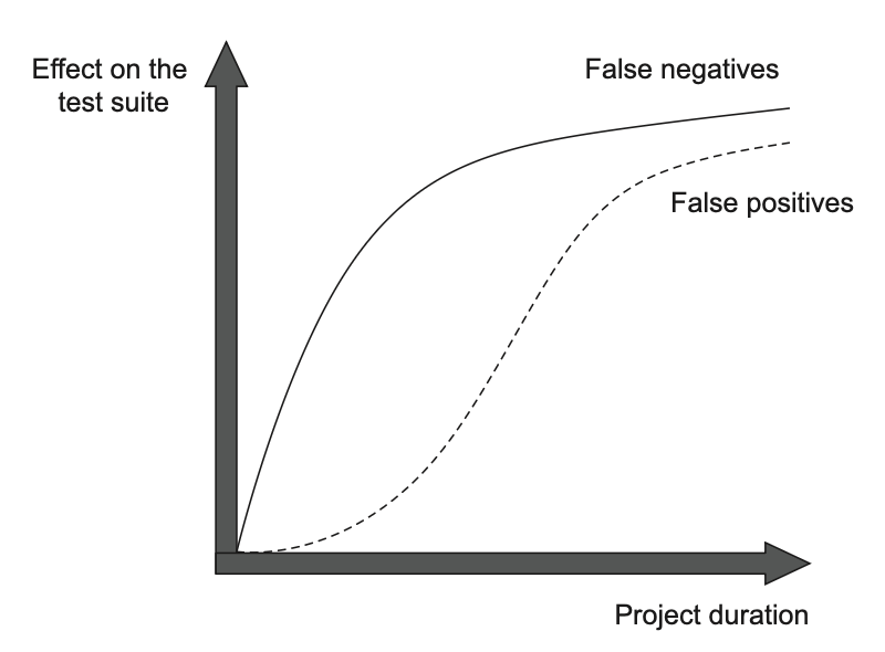 چرا اینقدر روی false positive تأکید میشه؟ چون میتونه کل مجموعه تست رو نابود کنه. همونطور که از فصل ۱ یادت هست، هدف یونیت تست اینه که رشد پایدار پروژه رو ممکن کنه. مکانیزم این رشد پایدار اینه که تستها اجازه میدن قابلیتهای جدید اضافه کنی و مرتب بازآرایی انجام بدی بدون اینکه regression وارد بشه. اینجا دو مزیت مشخص وجود داره: