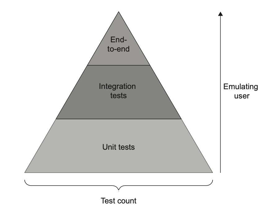 هرم تست معمولاً بهصورت یک هرم نمایش داده میشه که شامل سه نوع تست هست. عرض هر لایه نشاندهندهی میزان فراوانی اون نوع تست در مجموعهی تستهاست؛ هرچه لایه پهنتر باشه، تعداد تستها بیشتره. ارتفاع لایه هم نشون میده که این تستها چقدر به شبیهسازی رفتار کاربر نهایی نزدیک هستن.