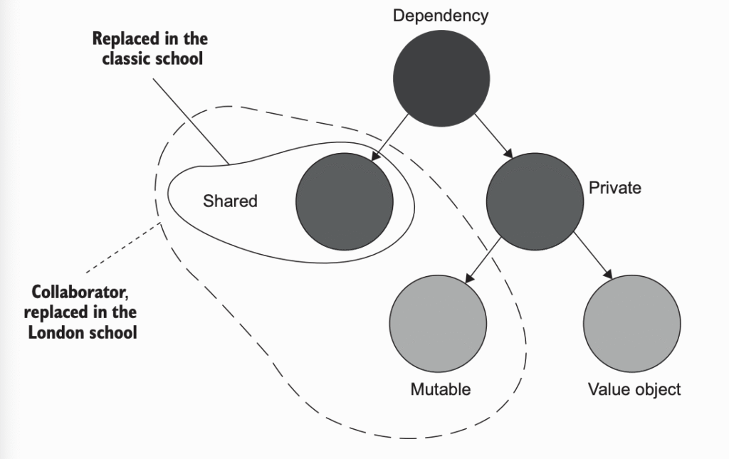 همهی وابستگیهاش—بهجز وابستگیهای تغییرناپذیر—باید با test double جایگزین بشن. – مکتب کلاسیک معتقده که تستهای واحد باید از هم ایزوله باشن، نه خود واحدها.